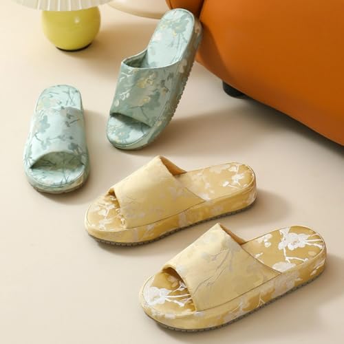 Retro Embroidered Thick Sole Slippers Women Single Strap Slides Run Small Silk-Like Upper Soft TPR Anti-Slip Soles Indoor Shoes 7