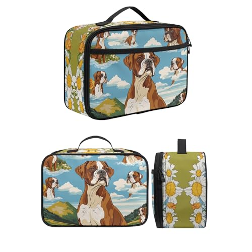 Kids Dog Boxer Print Backpack with Lunch Box with Front Pocket Comfy Padded Back Lightweight Student 17 Inch School Backpack and Lunch Bag Set for Girls Boys Animal Bookbag Ages 6-12 1