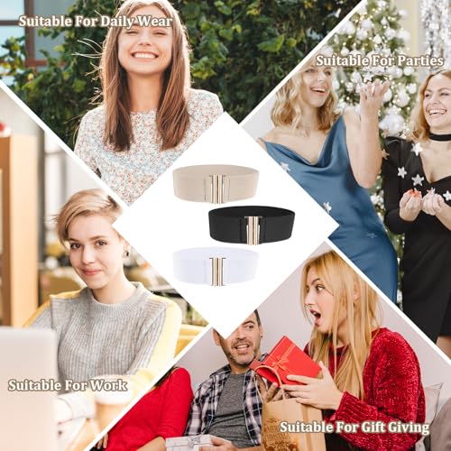 More information about 3PCS Elastic Belt Wide Stretchy Waist Belt Trimmer Stretch Waistband Cinch Belts Vintage Elastic Belts for Women Pants Jeans Dresses (Khaki, Black, Pure White, 26.8×2.4 Inches)