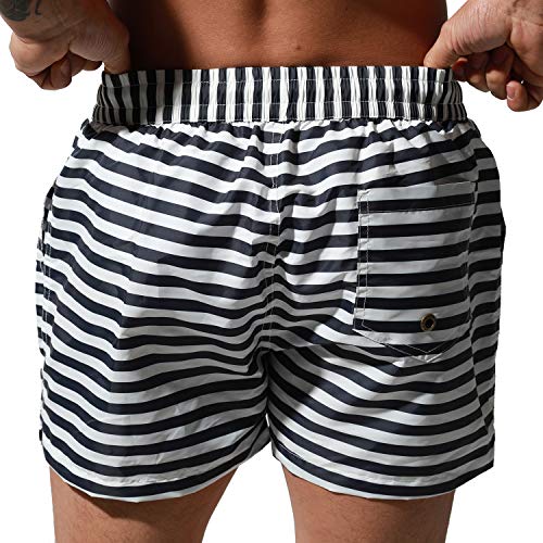 Men's Striped Board Shorts Beachwear Quick-Dry Nylon Loose Swimming Trunks 5