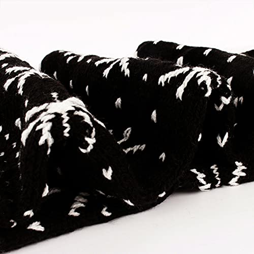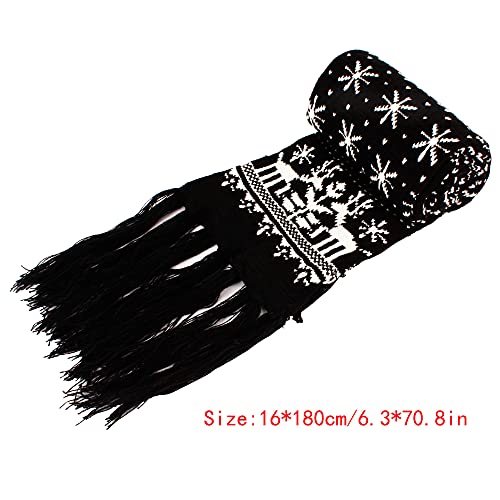 Men Women Reindeer Snowflake Dotted Knit Scarf with Tassels Winter Warm Long Scarf Wrap Black 5
