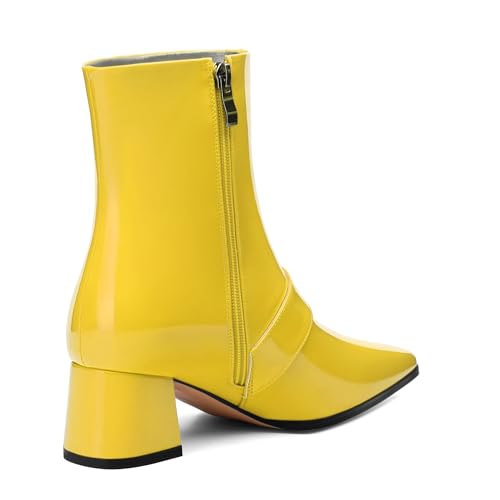More information about Women's Mid-Calf Boots, Women's Chunky Heeled Booties Patent Leather Buckle Square Toe Ankle Boots Mid Block Heel Short Boots 2 Inch