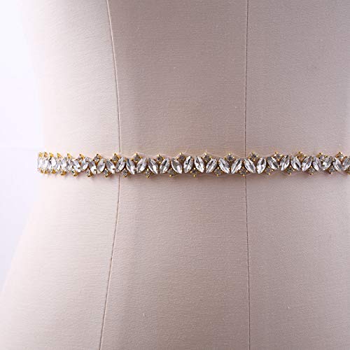 More information about Thin Bridal Belt Sash with Pearls Rhinestones Shiny Crystal Bridesmaid Beads Sash for Wedding Gown