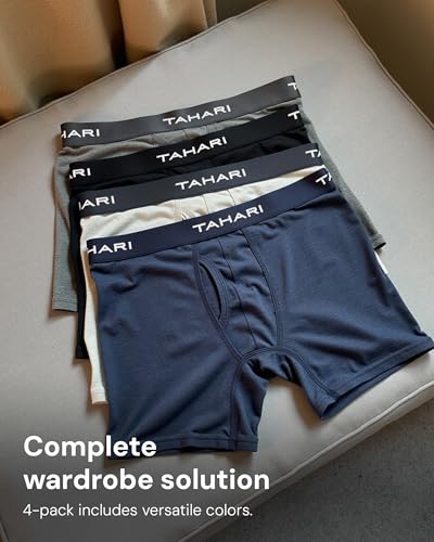HOT ! TAHARI Stretch Cotton Boxer Briefs for Men Pack of 4, Mens Underwear Boxer Briefs 4-Pack, Soft and Breathable