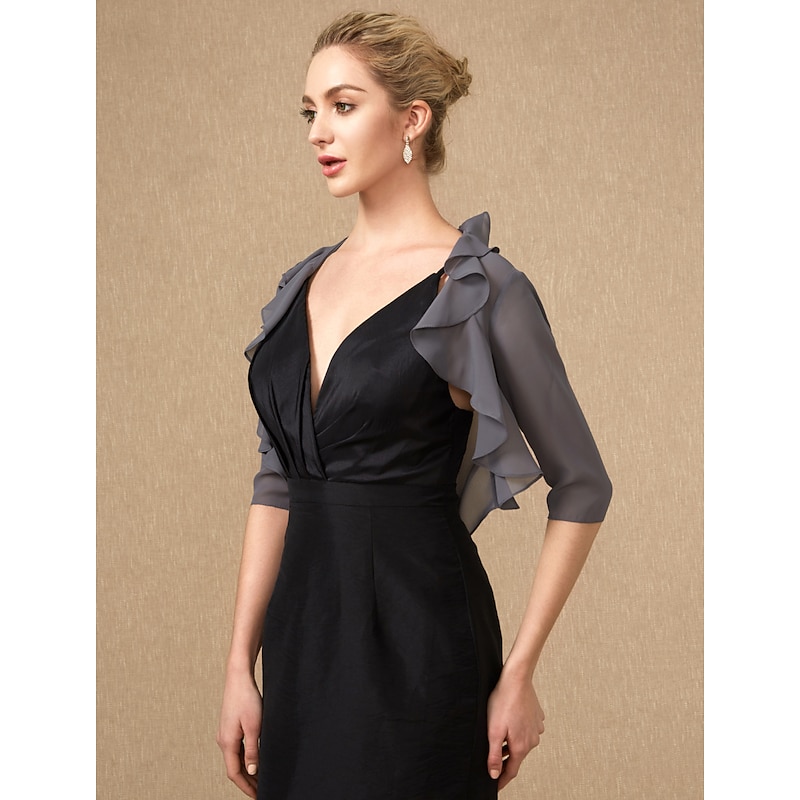 More information about Half Sleeve Shrugs Chiffon Wedding / Party / Evening Women's Wrap With Cascading Ruffles/Wedding Guest dress to impress