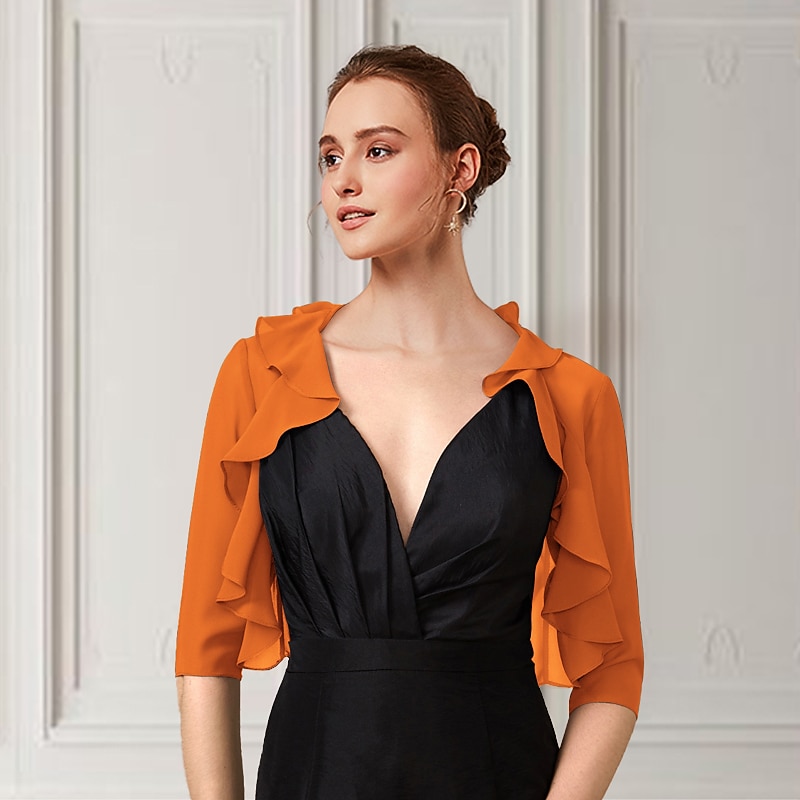 Half Sleeve Shrugs Chiffon Wedding / Party / Evening Women's Wrap With Cascading Ruffles/Wedding Guest dress to impress 7