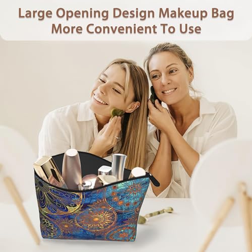 HOT ! Makeup Bag Blue Gold Mandala Cosmetic Bags for Women Mini Portable Boho Flower Travel Toiletry Bag Organizer Make up Brushes Aesthetic Accessories Waterproof Storage Bags