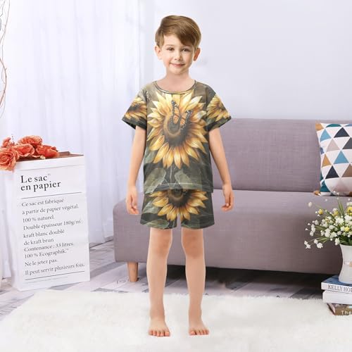 ALAZA Sunflower Butterfly Flower Blossom Pajamas Set Short Sleeve Cotton Sleepwear Summer Pjs 2 Piece 5-14Y 5