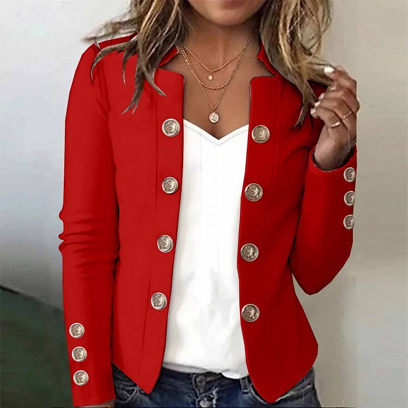 More information about Women's Blazer Comfortable Buttons Fashion Plain Street Holiday Double Breasted Regular Stand Collar Regular Fit Long Sleeve Outerwear Black White Pink Fall