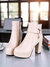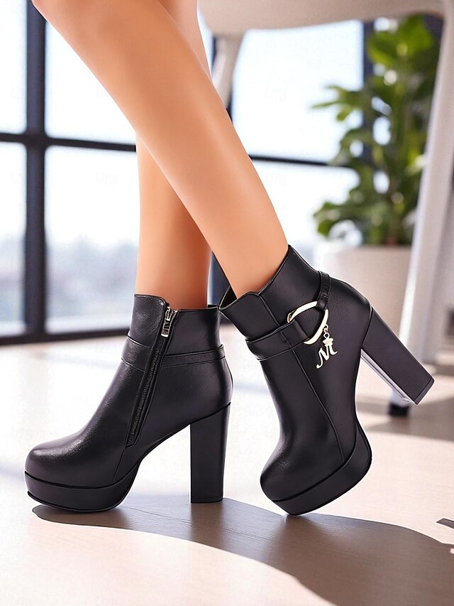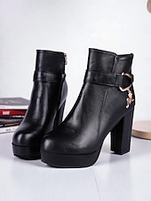 HOT ! Women's Black Platform Ankle Boots – Faux Leather Chunky High Heel Booties with Side Zipper for Fashion, Work Outing and Night Out