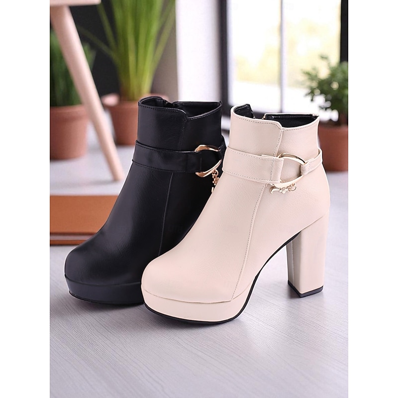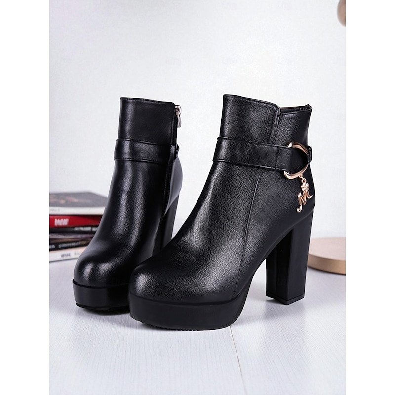 Women's Black Platform Ankle Boots – Faux Leather Chunky High Heel Booties with Side Zipper for Fashion, Work Outing and Night Out 4
