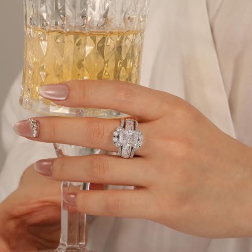 HOT ! Jeulia 3PCS Wedding Ring Set for Her, 925 Sterling Silver 5.2CT Round Cut Women's Bridal Sets Romantic Anniversary Engagement Promise Gift with Jewelry Box
