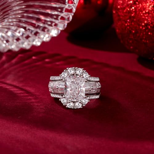 Jeulia 3PCS Wedding Ring Set for Her, 925 Sterling Silver 5.2CT Round Cut Women's Bridal Sets Romantic Anniversary Engagement Promise Gift with Jewelry Box 3