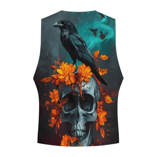Black Raven On Floral Skull Trendy Vest Suit for Men V Neck Formal Dress Waistcoat Vests Business Slim Fit 3