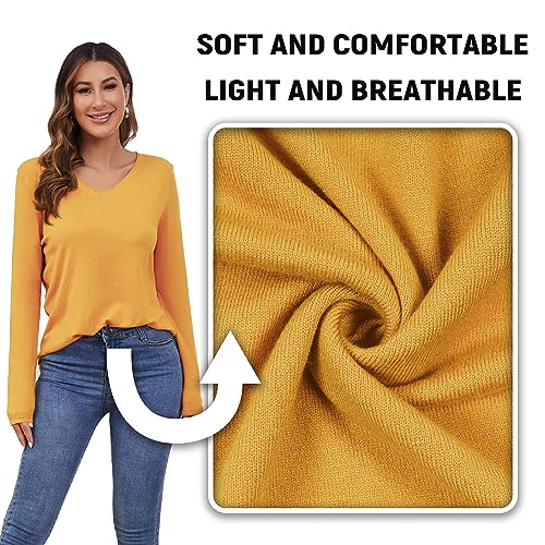 Women's V Neck Pullover Sweater Long Sleeve Soft Knit Lightweight Jumper Tops 5