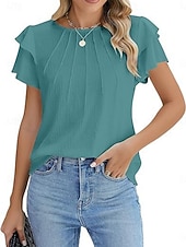 More information about Women's Shirt Blouse Solid Color Basic Casual Short Sleeve Crew Neck Regular Tops Daily Ruffle White Green Summer