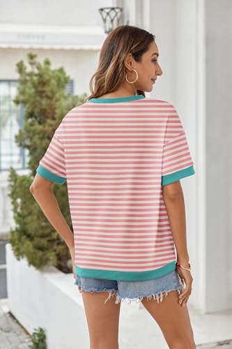 Zeagoo Womens Tops Casual Oversized Short Sleeve Sweatshirt Summer Striped Shirt Crewneck Pullover Loose T Shirts Blouse 2