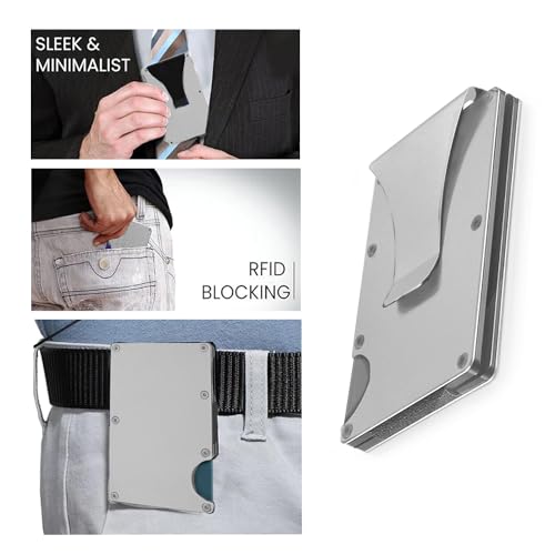 Generic Minimalist Wallet for Men, Slim Aluminum Metal Pocket Wallet with Money Clip, Blocks RFID Scanners ID Card Holder(Silver) 1