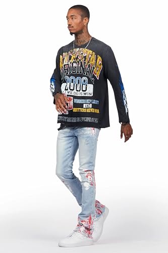 HOT ! Men's Kodak Blue/Red Painter Stacked Flare Jean