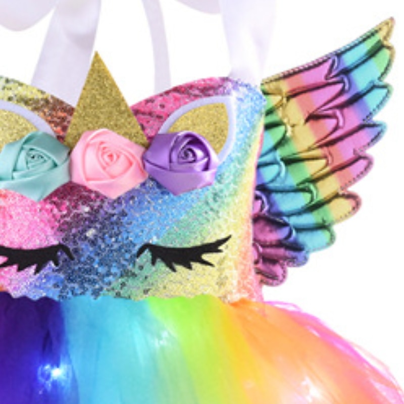 More information about Kids Girls' Led Luminous Unicorn Tutu Dress Birthday Performance Ruched Mesh Patchwork Purple Rainbow Light Blue Cotton Above Knee Sleeveless Costume Cute Dresses Fall Summer