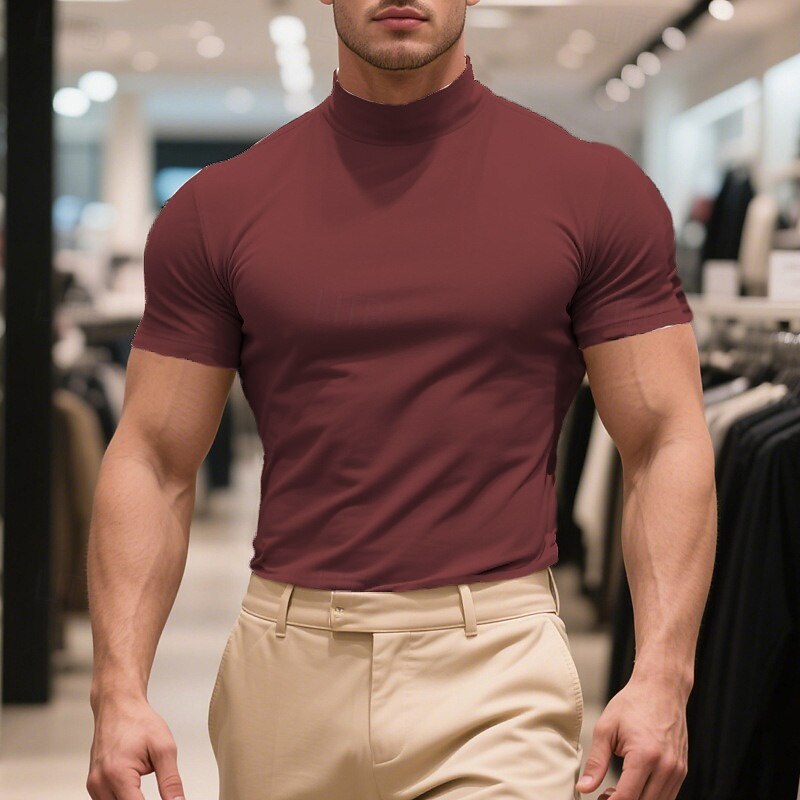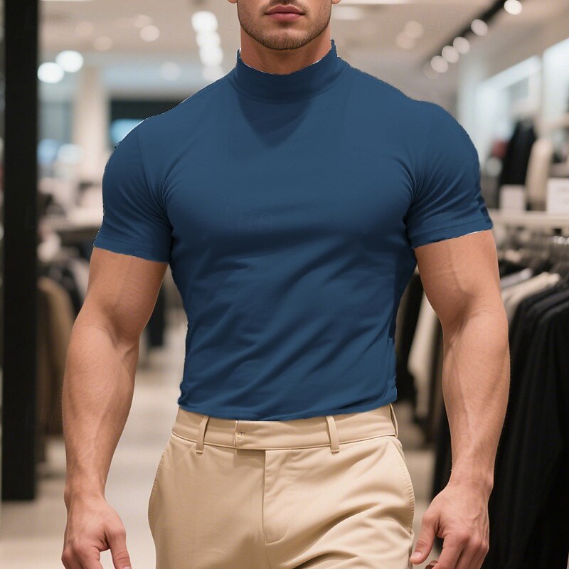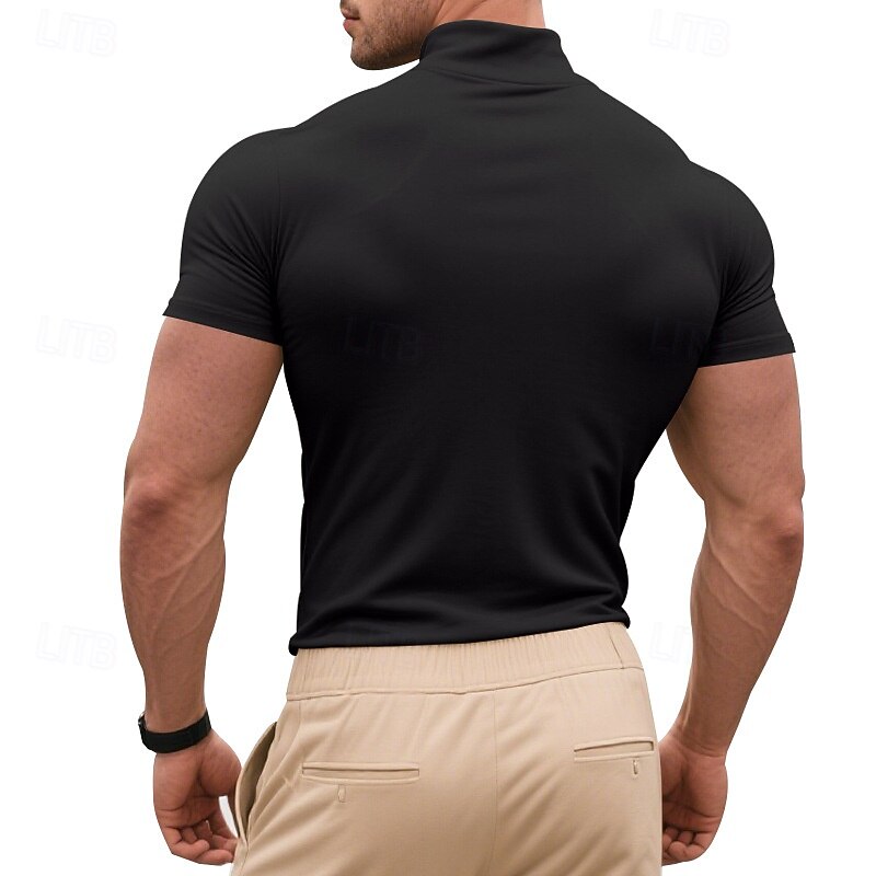 Highlights - Stay cool and stylish this summer with our men's short sleeve turtleneck - Made from high-quality polyester fabric for all-day comfort - Perfect for a basic yet trendy look, ideal for vacation occasions