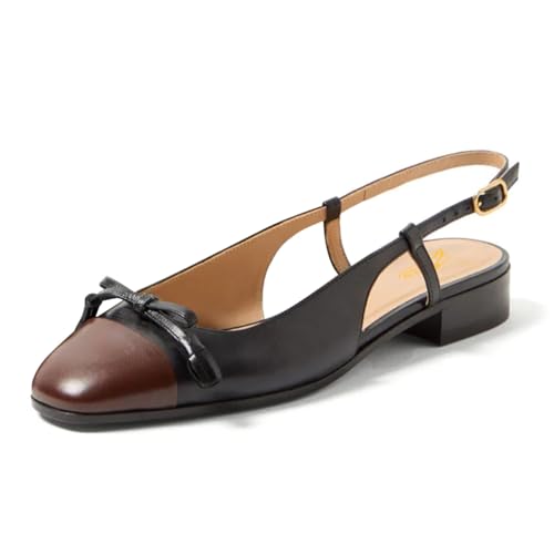Zszszsu Women's Square Cap Toe with Bow Pumps Chunky Block Low Heels Slingback Buckled Strap Dressy Casual Comfy Daily Wear Shoes Size 4-16 US 1