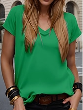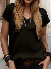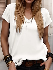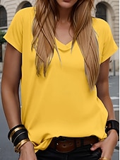 More information about Women's T Shirt Solid Color Plain Stylish Casual Short Sleeve V Neck Regular Tops Daily Going out Weekend Print Black White Yellow Green off-white Summer Spring