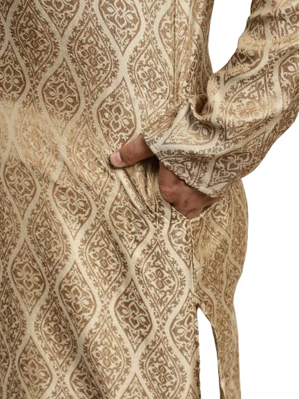 Sojanya Plus (Since 1958) Men's Jacquard Silk Teal Blue & Gold ONLY Long Kurta 3