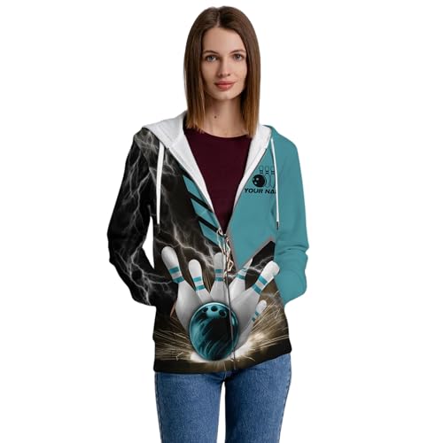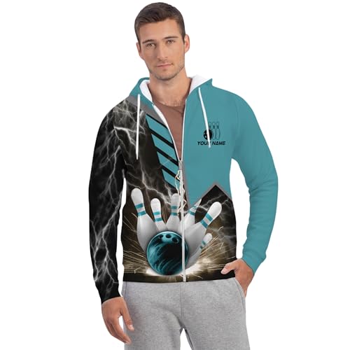 HOT ! Printing Bowling Full Zip Hoody For Bowling Lover Lightning Bowling Alley Zipper Hoodie Bowling Hooded Jacket