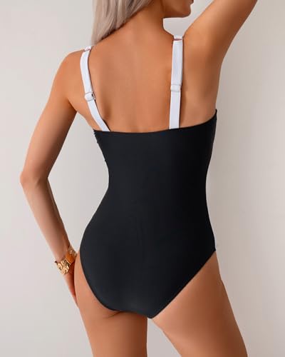 Fanuerg Women One Piece Swimsuit Ruched Tummy Control Bathing Suit Slimming Color Block Swim Suit Swimwear 3