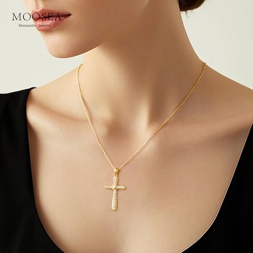 HOT ! MOOSEA Moissanite Cross Necklace for Women, D Color VVS1 Clarity Lab Created Moissanite Necklace, 925 Sterling Silver Cross Necklaces, Anniversary Christian Gifts for Women