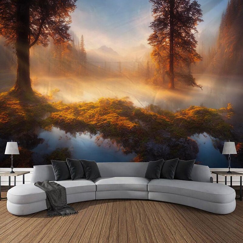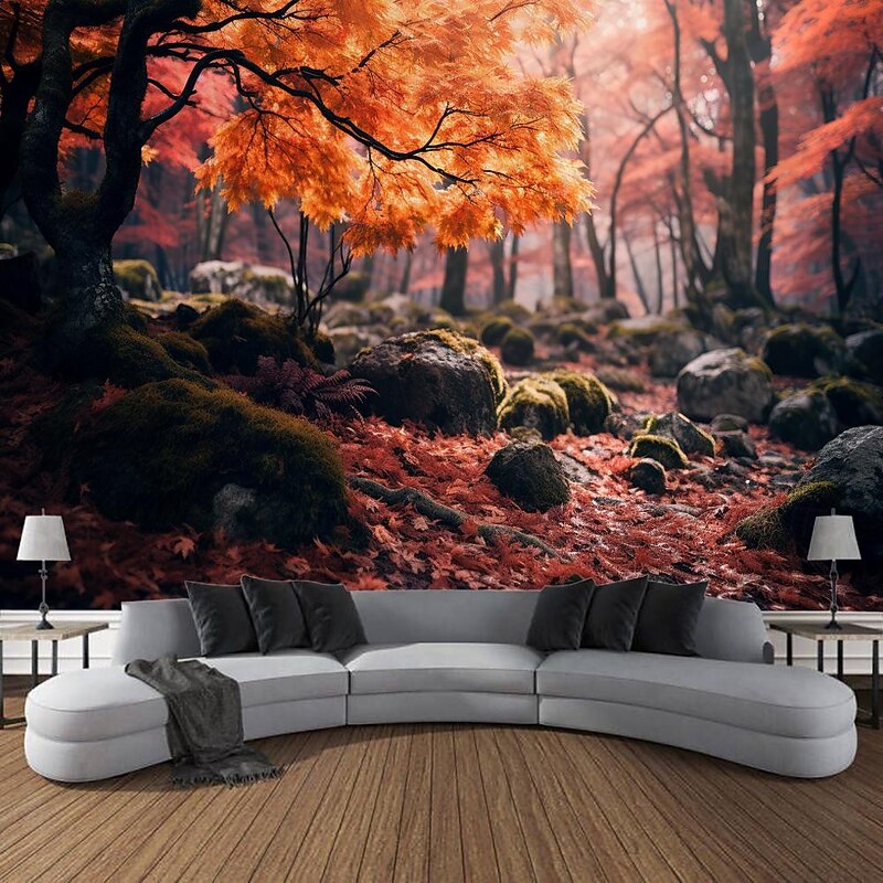 HOT ! Autumn Forest Cascade Hanging Tapestry Wall Art Large Tapestry Mural Decor Photograph Backdrop Blanket Curtain Home Bedroom Living Room Decoration