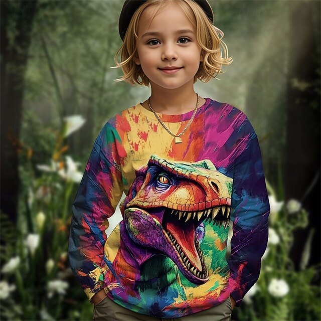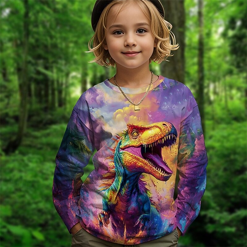 HOT ! Girls' 3D Graphic Animal Dinosaur T shirt Tee Long Sleeve Spring Fall Fashion Basic Kids 4-12 Years Crew Neck Outdoor Casual Daily Regular Fit