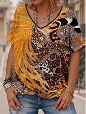 More information about Women's T Shirt Animal Color Block Vintage Casual Short Sleeve V Neck Regular Tops Daily Print Orange Summer Spring