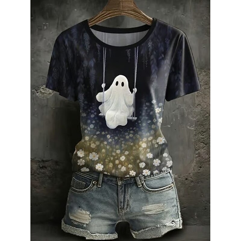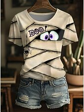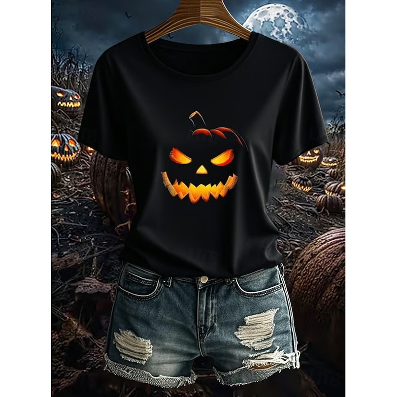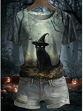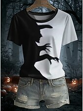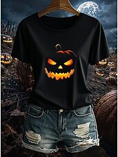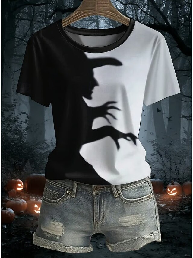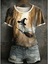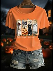 More information about Halloween Women's T shirt Witch Graphic Skull Vintage Stylish Classic Short Sleeve Crew Neck Regular Tops Daily Weekend Print Black Orange Brown Green Khaki Spring, Fall, Winter, Summer