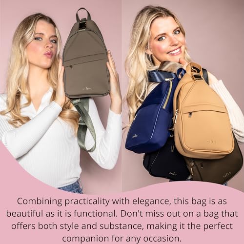 • ULTRA PREMIUM NEOPRENE CONSTRUCTION: Crafted from luxurious neoprene, this sling bag offers an incredibly soft texture and is easy to clean, making it both stylish and practical for everyday use.