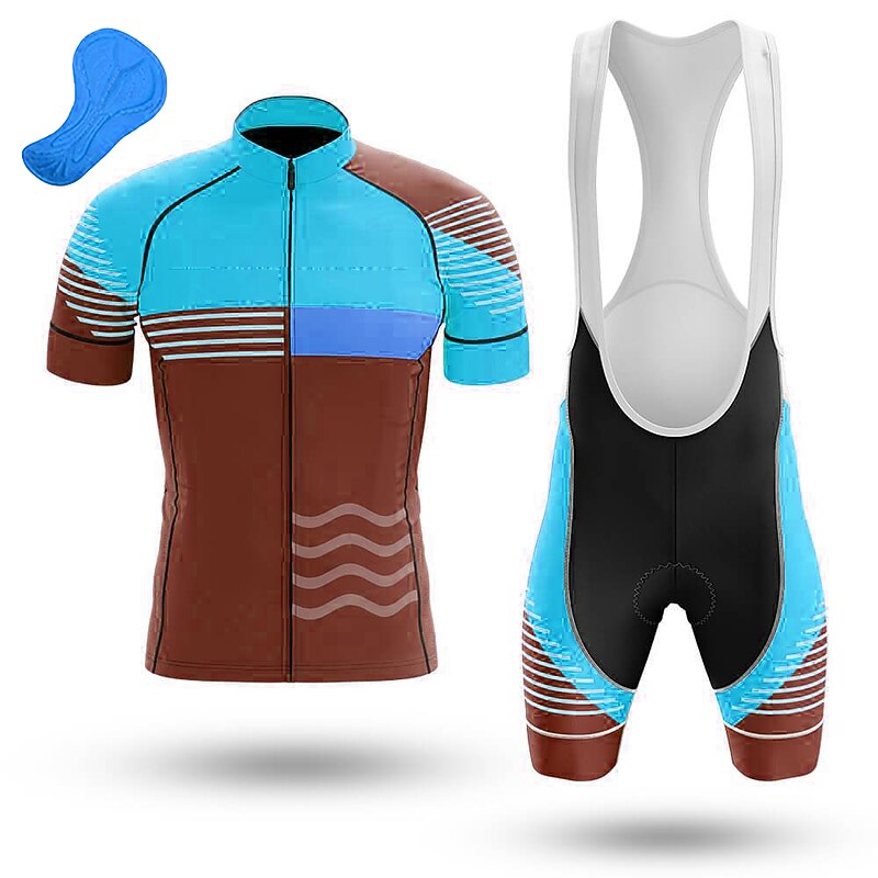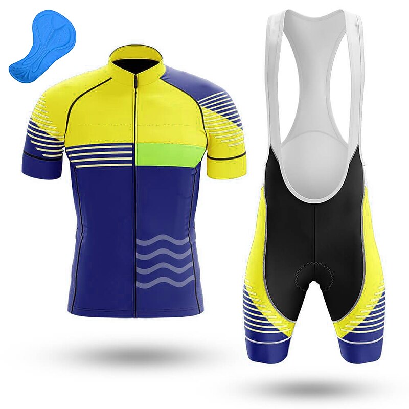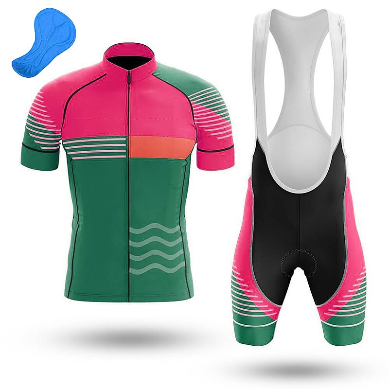 More information about Men's Cycling Jersey with Bib Shorts Short Sleeve Mountain Bike MTB Road Bike Cycling Orange Bike Clothing Suit 3D Pad Breathable Quick Dry Back Pocket Polyester Spandex Sports Lines / Waves Funny