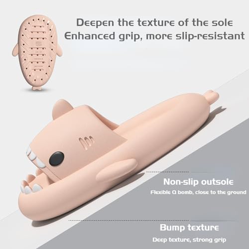 • Adorable Non-Collision Design: Embrace a whimsical touch with our Shark Cloud Slides featuring a concave sole design that shields your toes from accidental collisions with table legs or door thresholds. The unique open toe design mimics a shark's mouth, adding an element of fun to your every step.