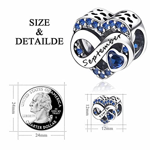 Birthstone Charm for Bracelet Necklace - 925 Sterling Silver Love Heart Happy Birthday Charm - Women's Jewelry Gift 5