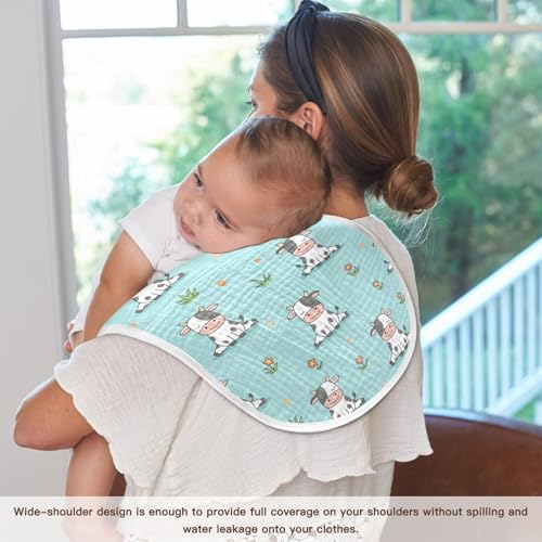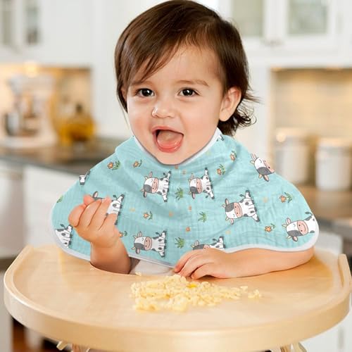 J JOYSAY Flowers Cow Teal Baby Burp Cloths for Boys Girls Large 22''x11'' Cotton 4 Layer Baby Infant Burp Cloths for Baby Sensitive Skin one sizex2 6