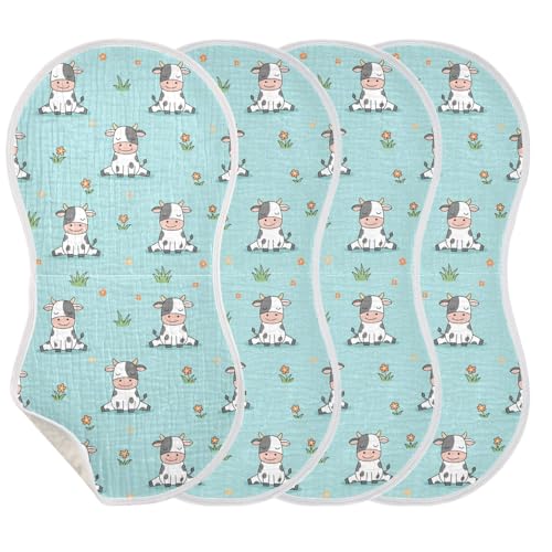 J JOYSAY Flowers Cow Teal Baby Burp Cloths for Boys Girls Large 22''x11'' Cotton 4 Layer Baby Infant Burp Cloths for Baby Sensitive Skin one sizex2 4