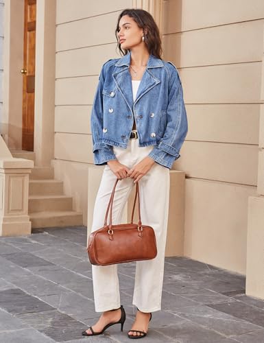 Fabric type: 80% Cotton, 18% Polyester, 2% SpandexCare instructions: Machine WashOrigin: Imported2025 Eye-Catching New Design: Uniquely crafted, our jean jackets blends a timeless denim aesthetic with a contemporary trench-inspired design. This denim jacket perfectly combines fashion and function through its trendy notch lapel, timeless storm flap and chic epaulette design for bold fashion statement. The double-breasted button front suggests an air of both elegant and cultivated taste for a clean look, while convenient side pockets and decorative sleeve straps add utility and style.Flattering Silhouette for All Body Types: Nitzana denim jacket for women stands out by perfectly blending the sophisticated structure of a trench coat with a 2025 new denim design. Its flattering crop cut and flat silhouette define your waist and create a sleek, slimming effect without effort. With distinctive seam design that enhances your natural shape, this women's short Jean Jackets offers a visually elongates your figure for a effortlessly polished look.Wrapped in Cloud-Like Comfort in Denim: Imagine a jean jacket that feels as light and soft as your favorite sweatshirt yet looks perfectly polished. That's Nitzana Denim Jacket. Crafted from breathable, stretch denim that resists wrinkles, denim trench coat offers unrestricted movement and a flattering fit. Light as air yet perfectly structured, whether you’re going for a chic street-style look or a polished office appearance, this will be a chic outerwear option to your wardrobe.Where Casual Cool Meets Work-Ready Elegance: Our cropped trench jacket for women effortlessly blends style and versatility, transitioning effortlessly from day to night. Pair it with a tee and jeans for relaxed and off-duty ease, or layer over a blouse and skirt for polished professionalism. Whether you opt for a playful light blue, a bold blue or a classic dark blue, the womens jean jacket is will be a great fall winter outerwear that will keep you looking polished and on-trend.Dress It Up or Down Effortlessly: Effortlessly versatile, our denim jacket transitions smoothly from office to outing while keeping you chic yet trendy. Layer it over tees, dresses, or blouses for any occasion — from brunch and dates to work, party, workouts, travel, street,weddings, vacations, or nights out. Ideal for spring, fall, and winter. Dress it up with heels for a polished look, or pair with boots for casual vibe. 2025's must-have jean jacket—one effortless layer for limitless looks. Perfect for everyday use. premium materials and excellent craftsmanship ensure long-lasting durability.