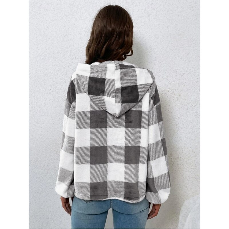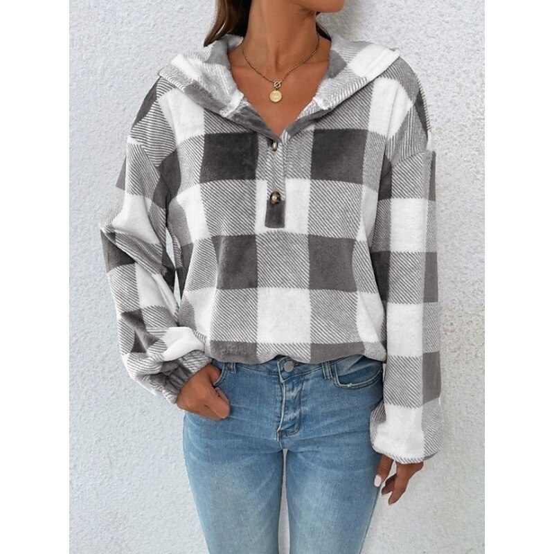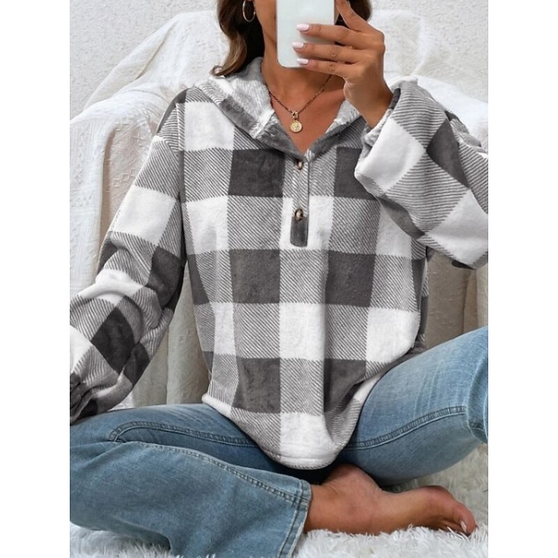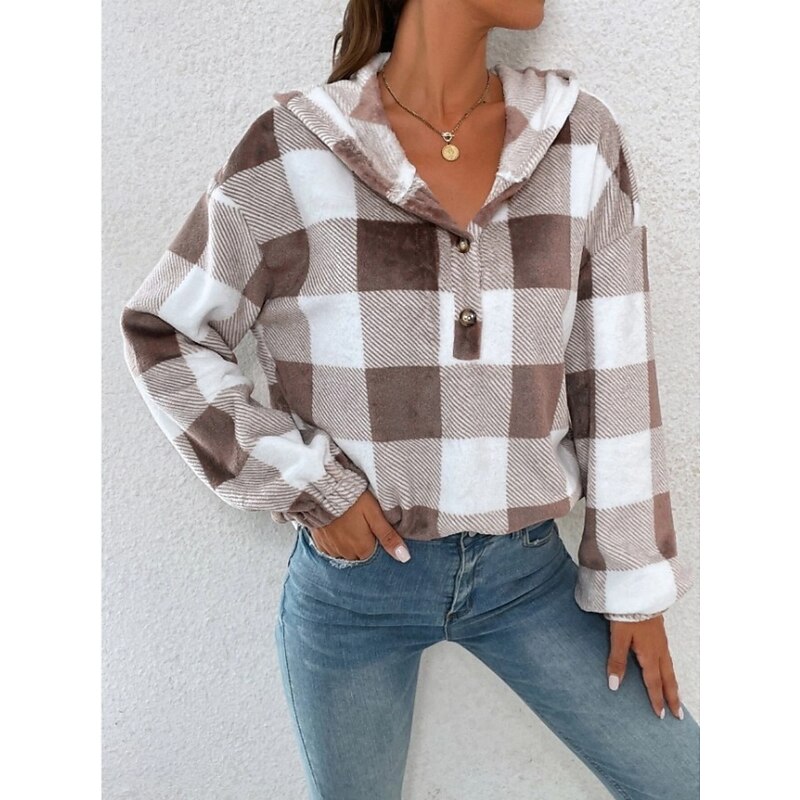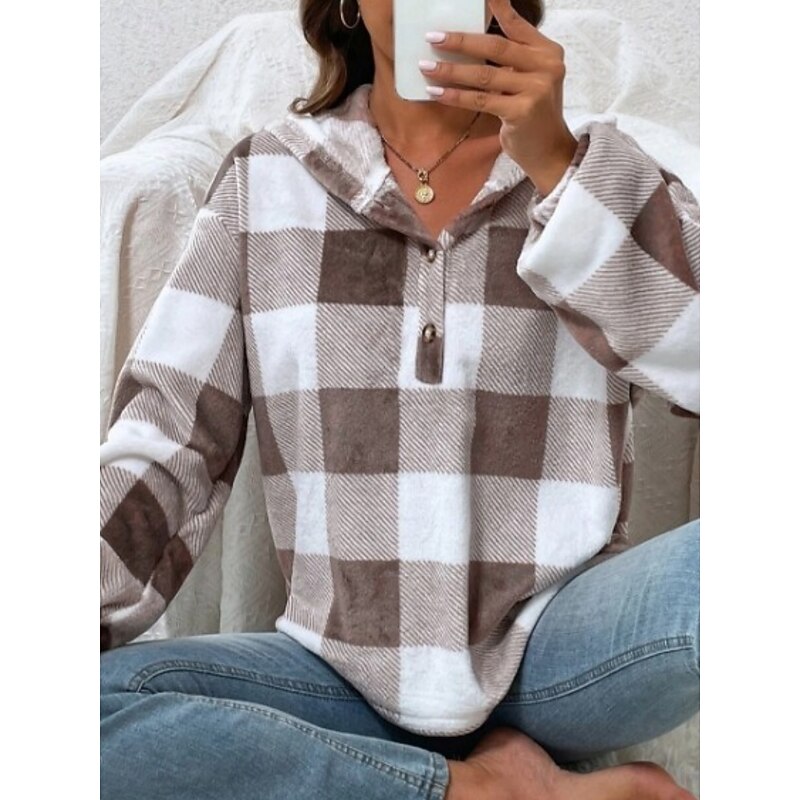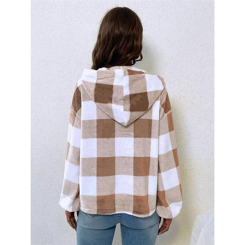 More information about Women's Pullover Hoodie Sweatshirt Plaid Casual Long Sleeve Hooded Regular Tops Street Dailywear Pocket Print Black Brown Khaki Gray Fall Winter