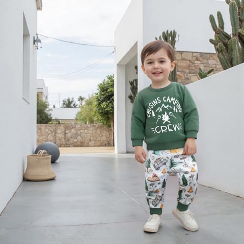 Fall Winter Outfit Toddler Baby Boy Cousins Camping Crew Long Sleeve Sweatshirt Pants 2Pcs Adventure Clothes Set 5