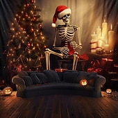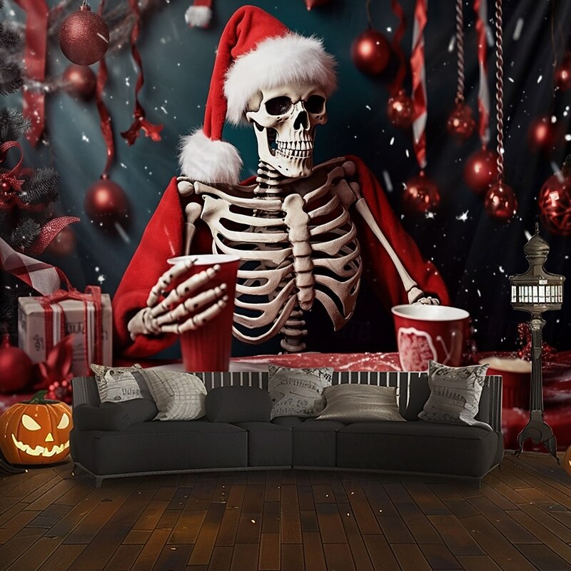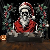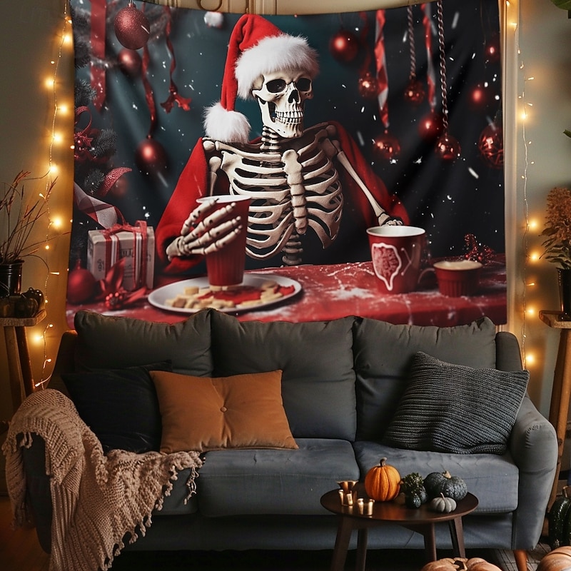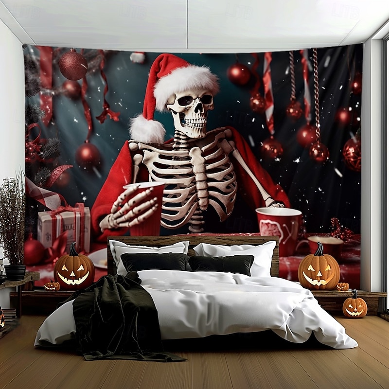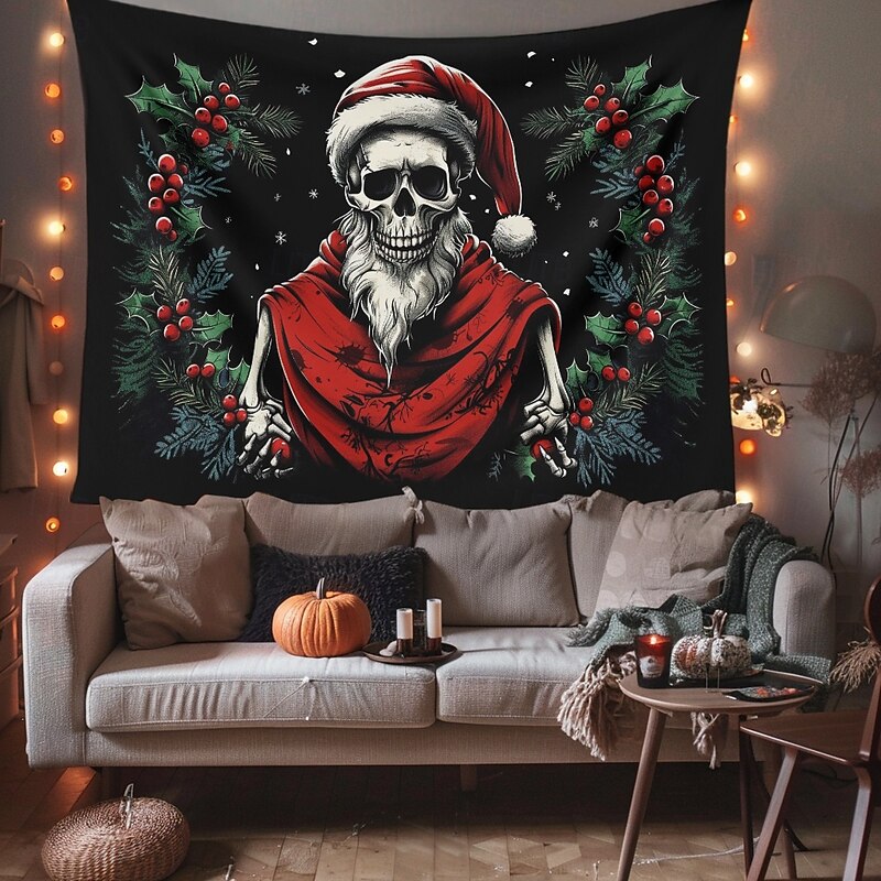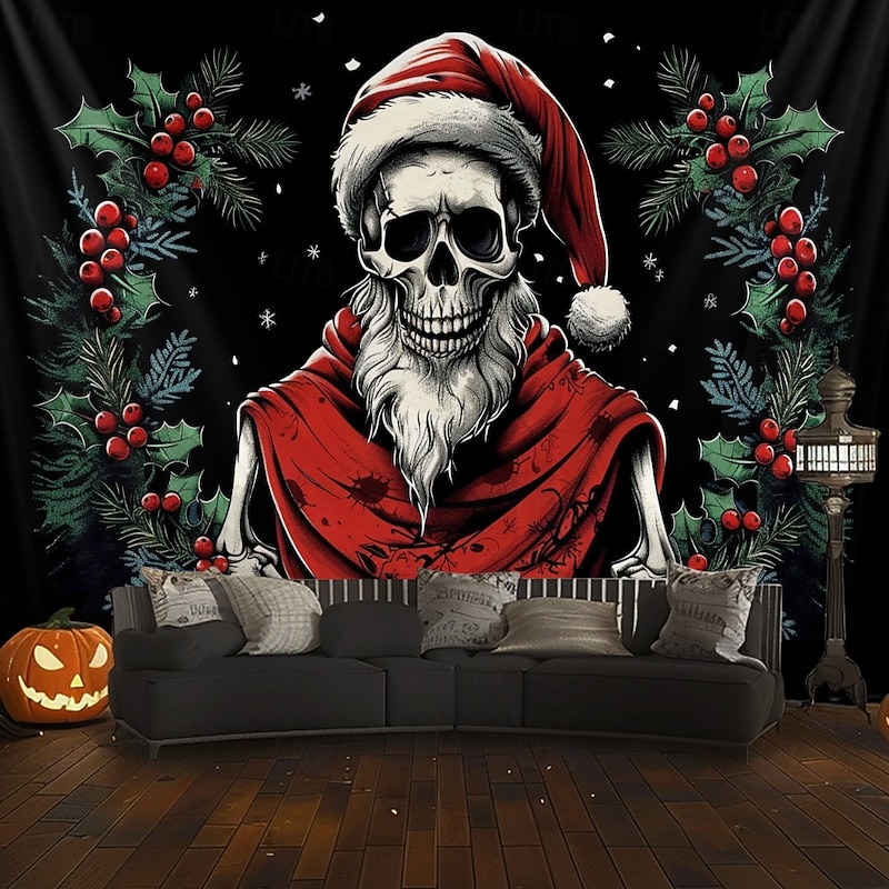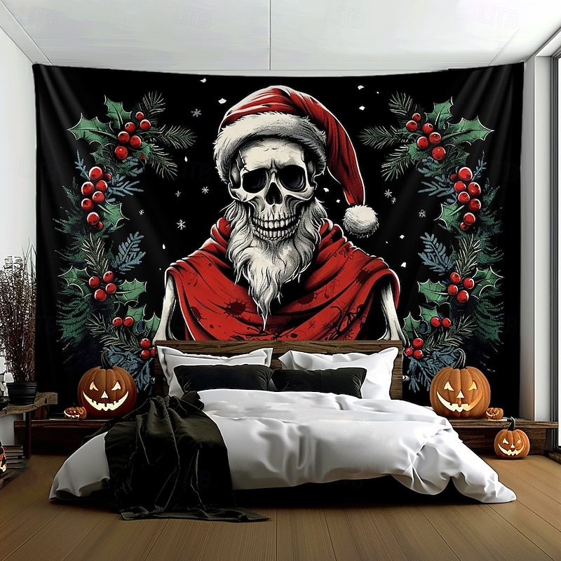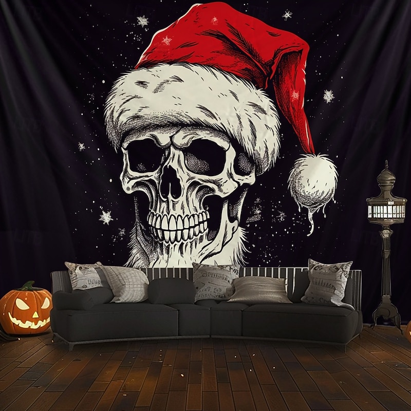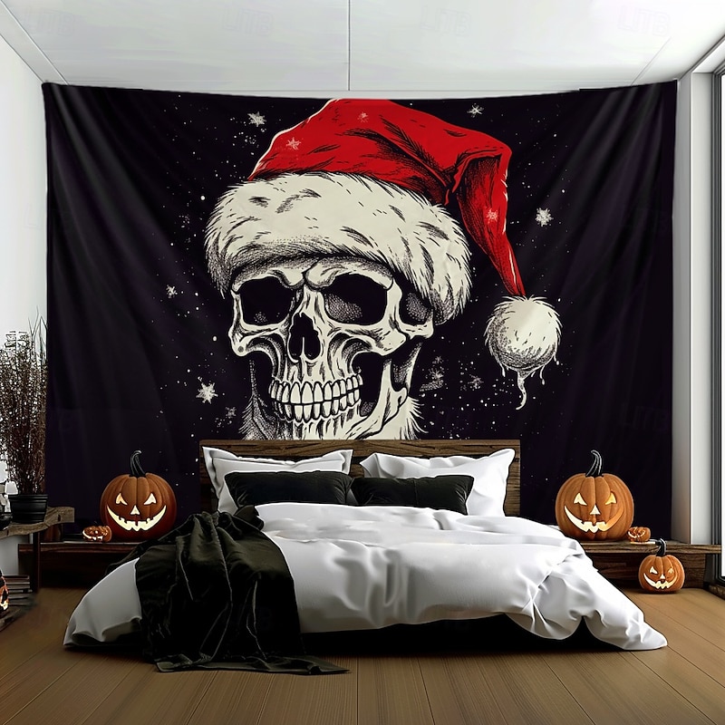 HOT ! Hanging Tapestry Skull Christmas Hat Wall Art Large Tapestry Mural Decor Photograph Backdrop Blanket Curtain Home Bedroom Living Room Decoration