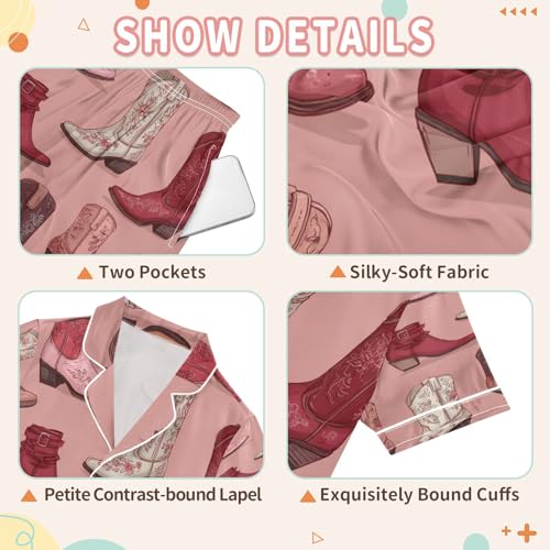 Satin Pajama Sets Short Sleeve Cowboy Boots Floral Kawaii Button Down Silky Nightwear 2 Piece PJS 5-14Y 6