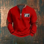 More information about Men's Sweatshirt Pullover Hoodie Sweatshirt Pullover Quarter Zip Sweatshirt Hunting Sweatshirt Black White Red Blue Khaki Henley Plain Patchwork Sports & Outdoor Casual Daily Streetwear Cool