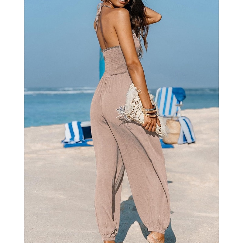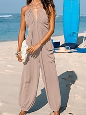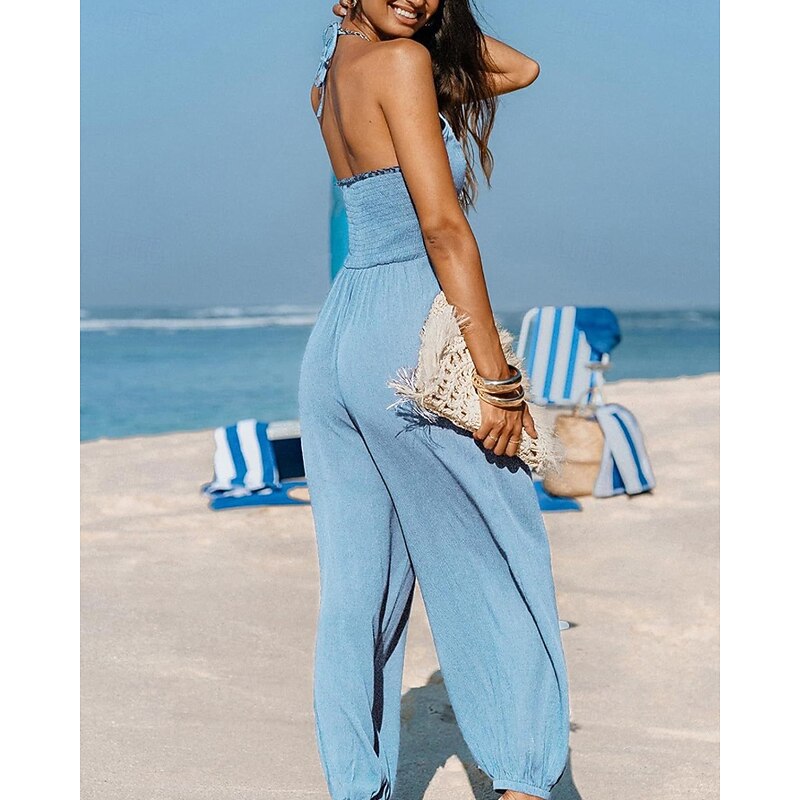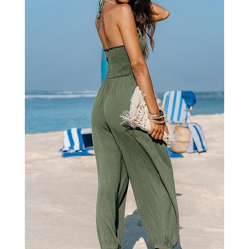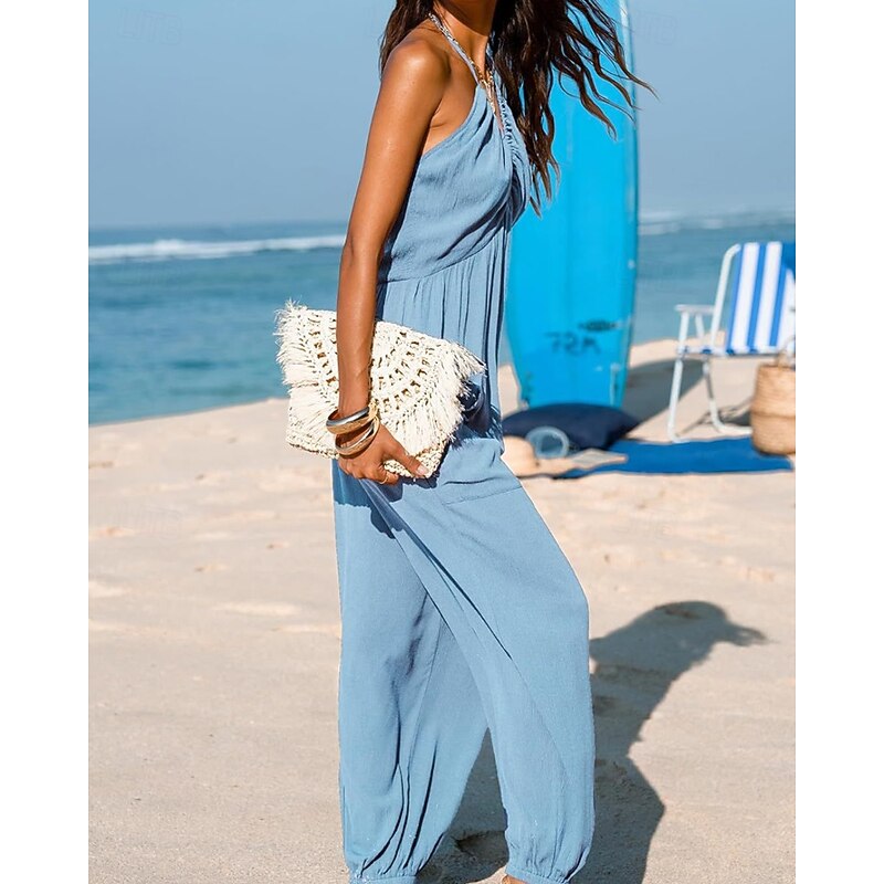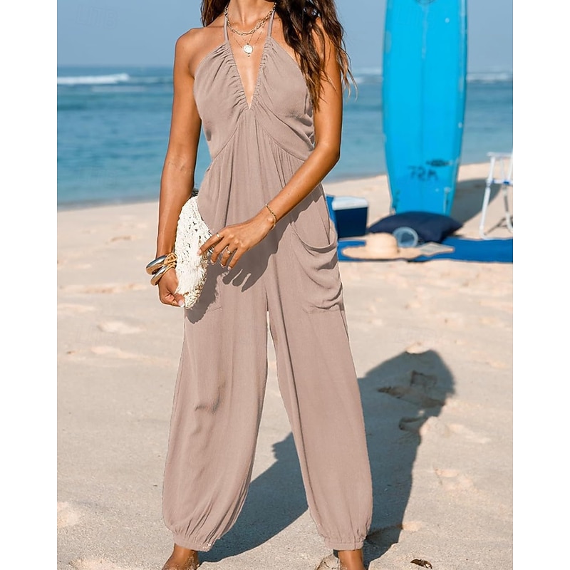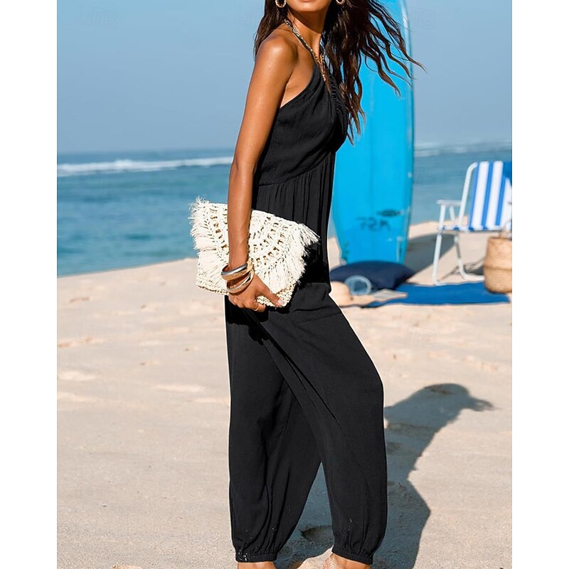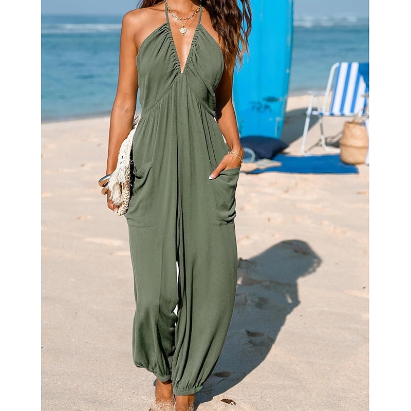 More information about Women's Normal Jumpsuit Streetwear Solid Color Sleeveless Halter Neck Pocket Street Daily Regular Fit Black Yellow Navy Blue Summer
