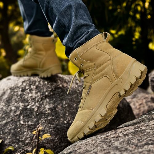 Men's Desert Military Boots Non-slip Comfortable Tactical Work Training Boots Outdoor Hiking Climbing Backpacking Shoes Lace Up Motorcycle Shoes 4