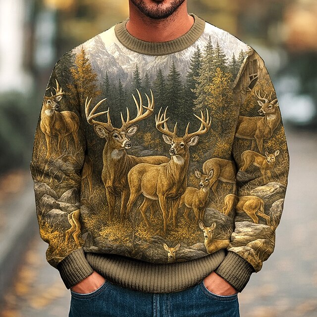 More information about Men's Animal Elk Pullover Sweater Jumper Knitwear Crewneck Casual Vacation Street Daily 3D Print Knitting Keep Warm Long Sleeve Fall Winter Blue Brown